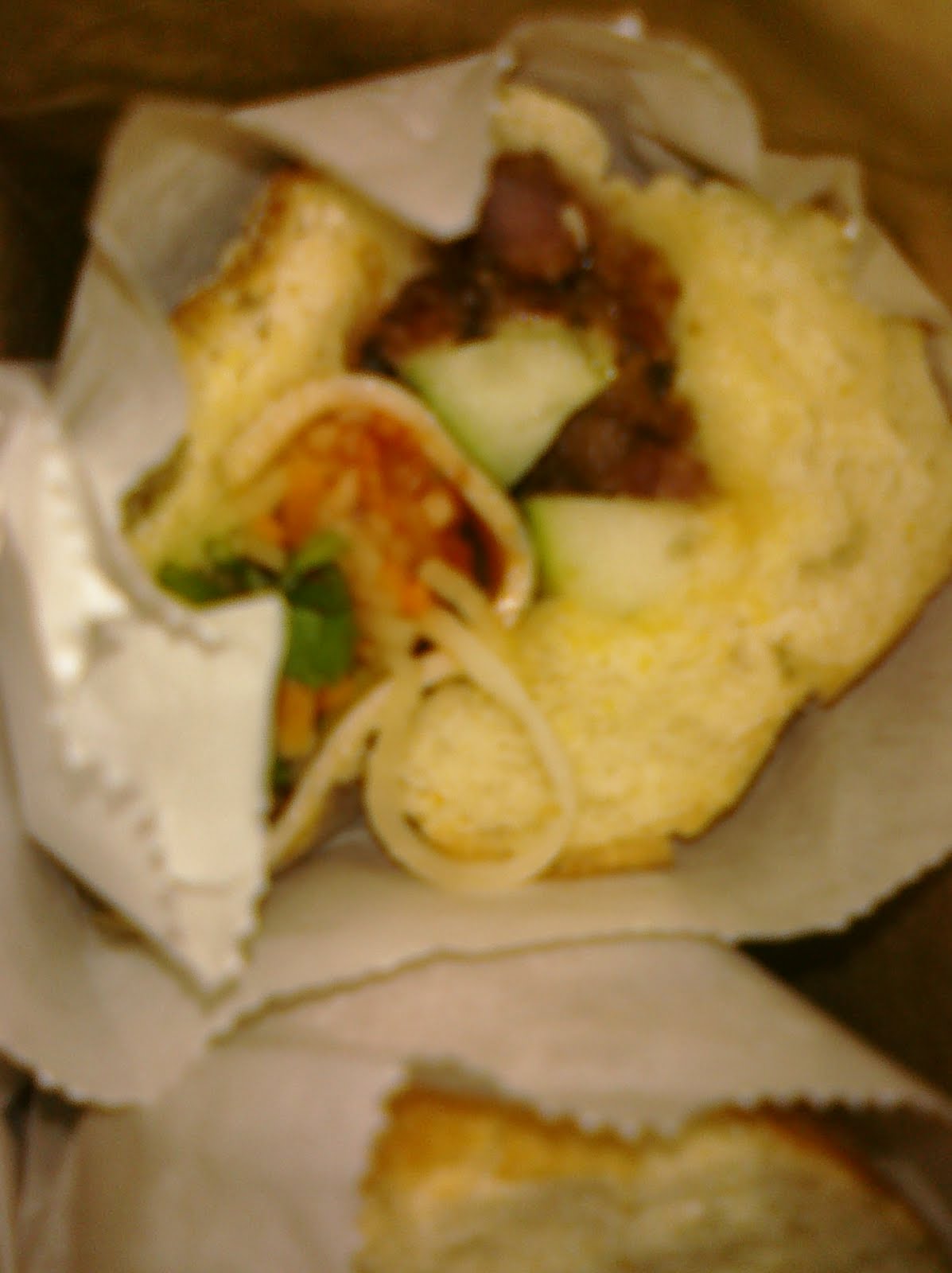 This is definitely more of a take out place, eventhough they do have a few stools. The sandwiches are pre-made so service is very fast. However, of all the ones I have tried so far, I liked this sandwich the least. I ordered the classic again, but the ground pork was hard, either from being overcooked or from air exposure since these sandwiches are made long before you oder them. The bread was also too soft. This place had Thai Iced Tea and other Milk Teas, but no Bubble Tea, which was sorely lacking in my Bahn Mi meal.