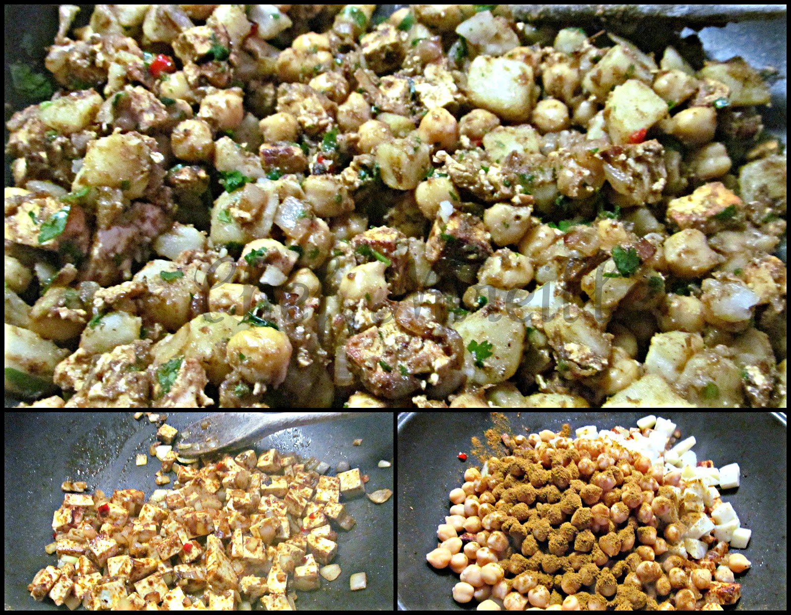 - Add paneer, the rest of the oil and masala and fry for about 3 minutes, tossing frequently.