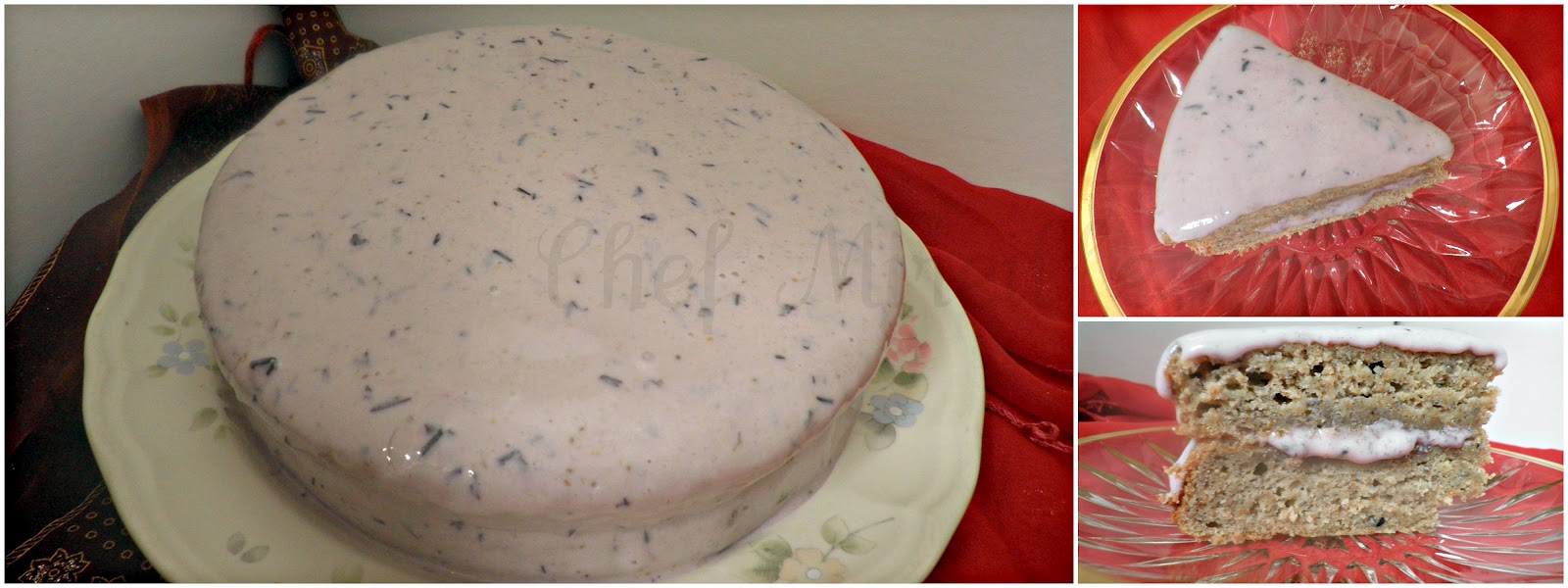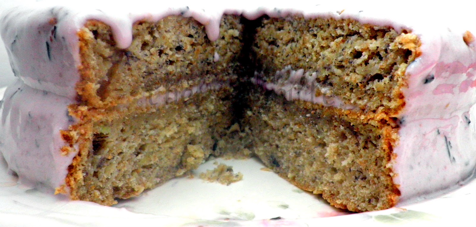 | Banana Cardamom Cake and Soft Blueberry Frosting |