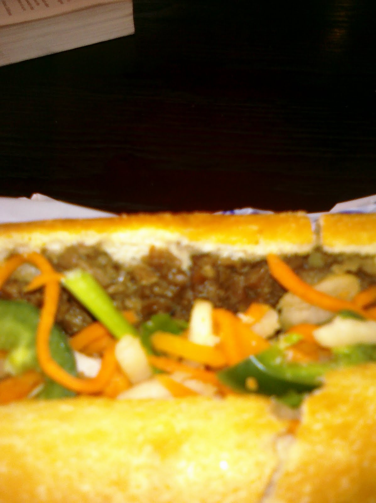 Now to the sandwich. The bread was the perfect baguette; not too soft with the perfect crisp when you bite into it. I ordered the grilled pork. .delicious with slight undertones of chili but nothing overpowering. .but my favorite part of the sandwich was missing. I love when I bite into a Bahn Mi and the delicious meat is balanced with the freshness of lots of mint and coriander. This one had barely 2 coriander leaves and that was it! The freshness which makes this meat filled sandwich perfect in summertime was missing.
