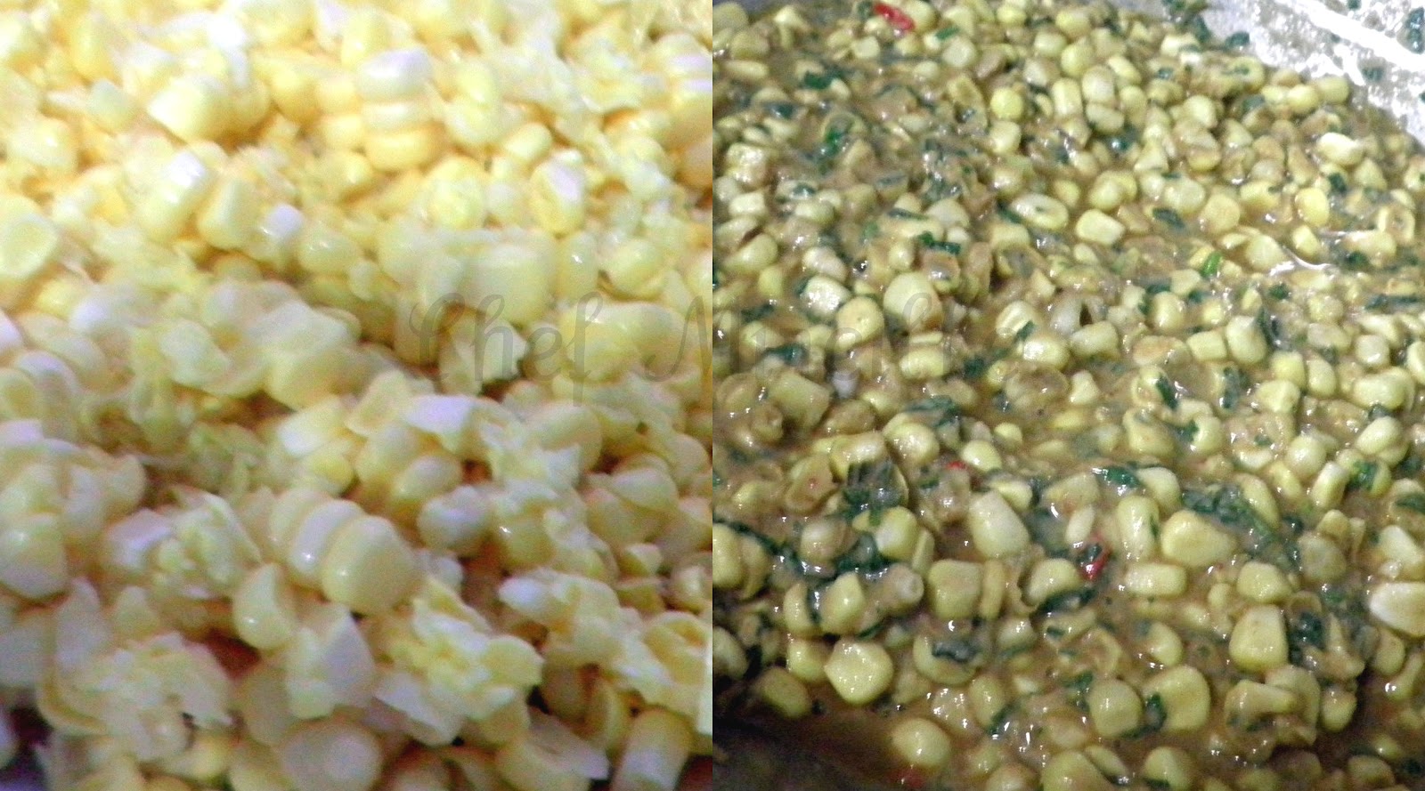 Using a sharp knife, slice the kernels from the cob and place in large bowl. Add all the other ingredients, except the oil and Chili Sauce. Stir well to mix thoroughly. The batter will be quite loose.